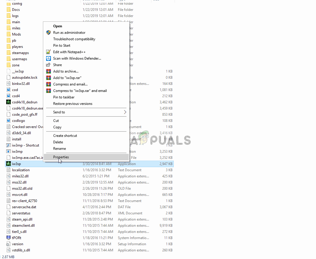 - Right-click on the main executable and select “Properties“.