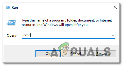 - Press Windows key + R to open up a Run dialog box. Next, type ‘cmd’ inside the text box and press Ctrl + Shift + Enter to open an elevated Command Prompt with admin access. When you are prompted by the UAC (User Account Control), click Yes to grant admin access.