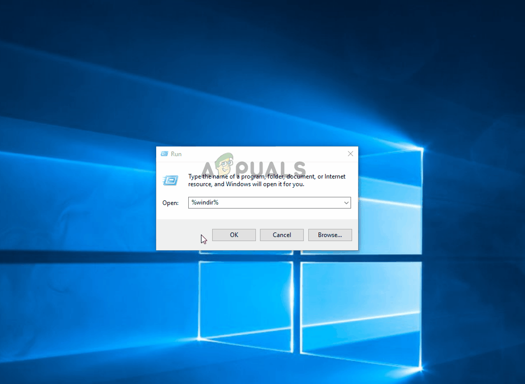 - Press Windows key + R to open up a Run dialog box. Then, type ‘%windir%’ inside the text box and press Enter to open up the Windows Folder.