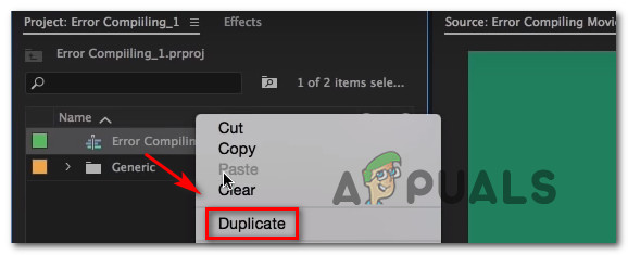 Several users have reported that duplicating the sequence that is in the process of being exported allowed them to complete the operation without seeing the ‘Error compiling Movie’. As it turns out, this has the potential of circumventing the error message and allowing you to export it without issues.