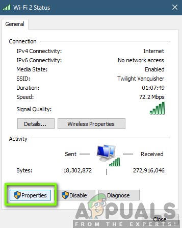 Opening Current Connected Network - Now click on “Properties” present at the near bottom of the small window which pops up.