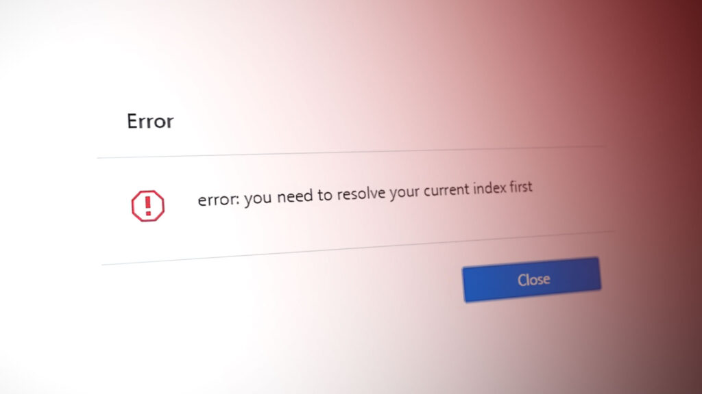 The error message You need to resolve your current index first occurs in Git when a merge conflict has occurred. This implies that until you fix the outstanding conflict, transitioning to a different branch via checkout is not permissible. Additionally, this message suggests a merge operation has failed or the files are in a conflict state.