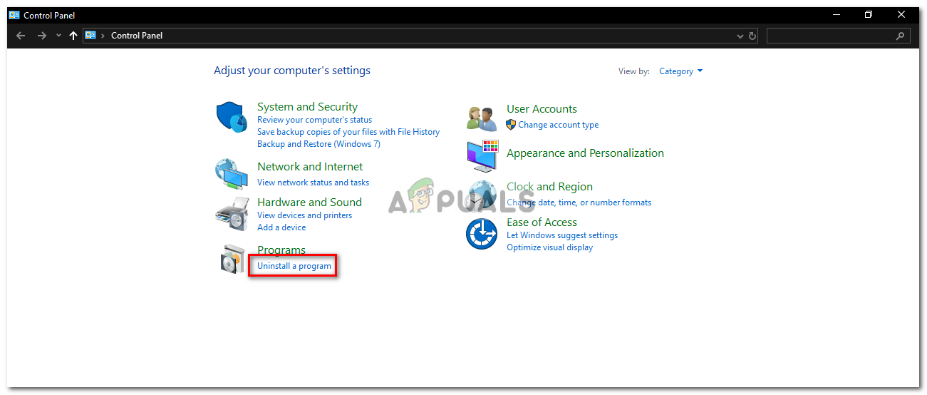 - Click Uninstall a program located under Programs.