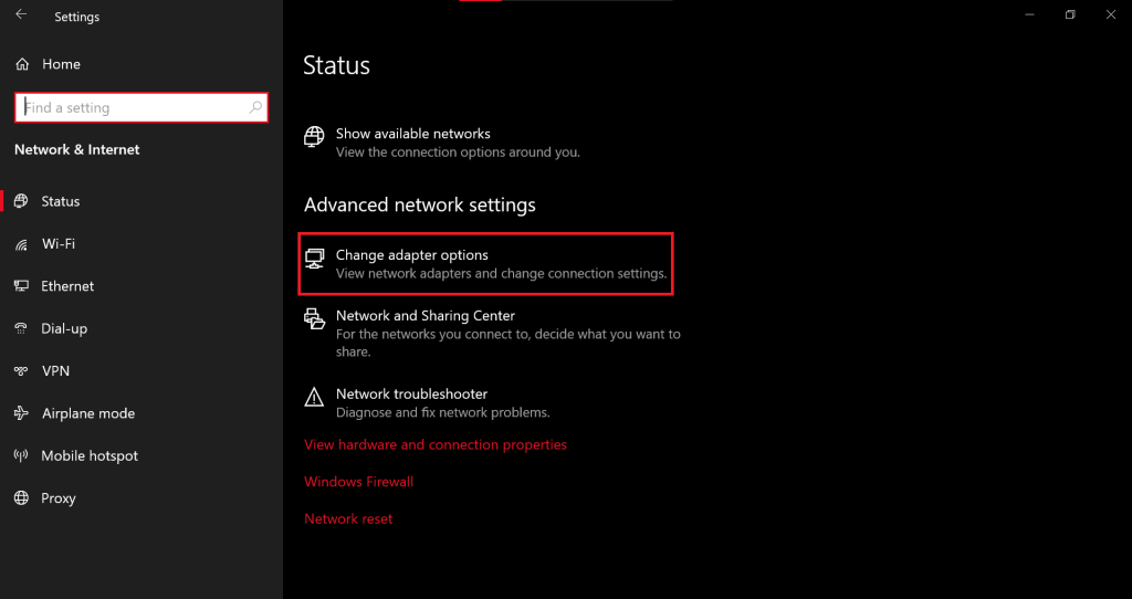 - Go to Change adapter options.