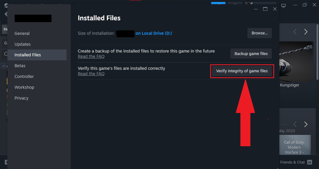 Verifying game files checks the integrity of your installation against the latest versions on the game servers. It compares the game’s current files on your computer to the most recent versions on the official game servers.