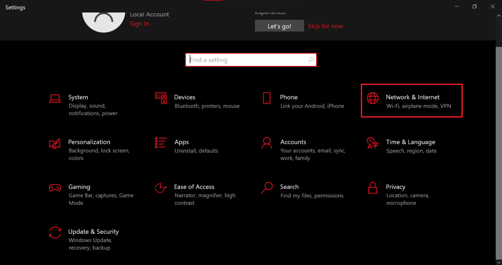 - Select Network & Internet.