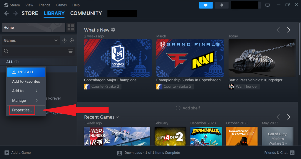 - Right-click Hell Let Loose and select Properties from the menu.