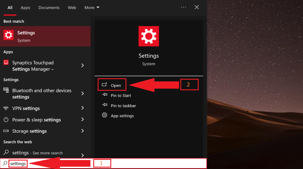 - Type Settings into the Windows search bar.