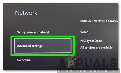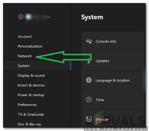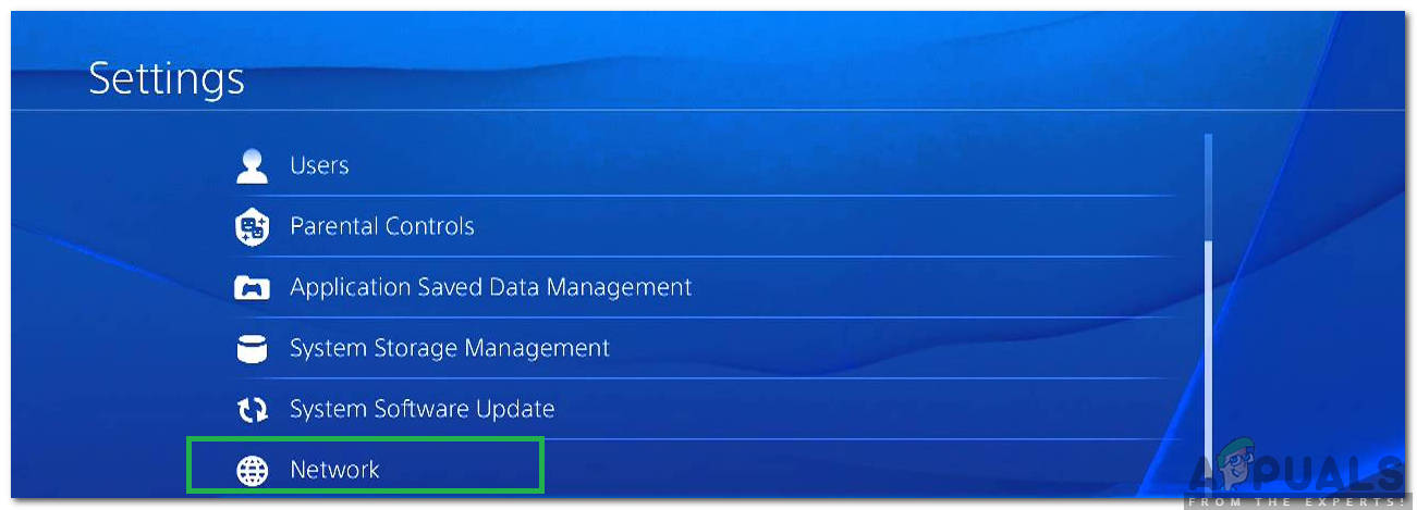 - Navigate to the “Settings” menu on your console and select “Network“.
