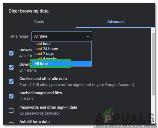 Selecting “All Time” as the time range - Check the first four options and select “Clear Data”.