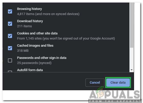 - Cache/Cookies: Cache is stored by applications to decrease loading times and provide a better experience. Cookies are stored by websites for the same purpose. However, sometimes, cookies and cache might be corrupted due to which this error is triggered.