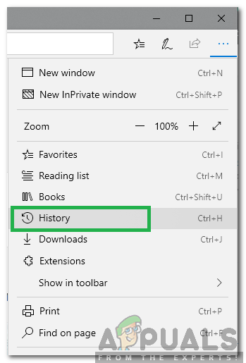 Clicking on the three dots in the top right corner - Click on the “History” option and select the “Clear History” button.