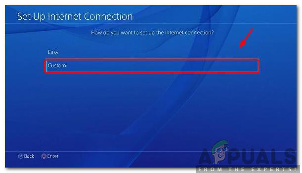 Selecting Custom connection type - Choose automatic for “IP Address” and “DHCP” settings if you have no preference.