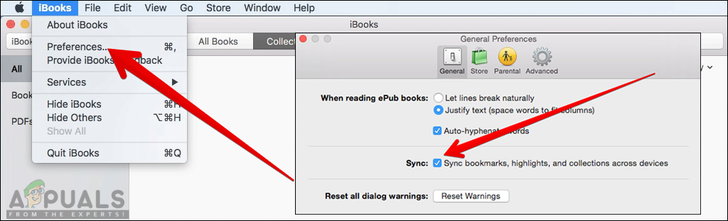 Sync settings on iPhone - On macOS, open the iBooks app.