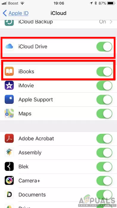 - If that doesn’t help, toggle OFF the iBooks option in iCloud, then toggle it back ON.