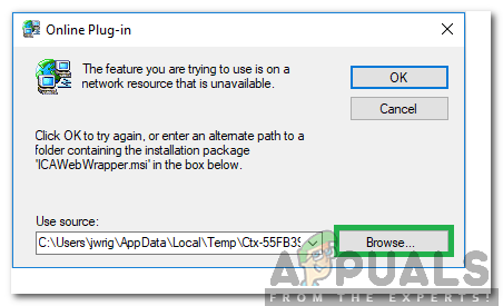 - Open the program from Citrix and if you get the error again, click on “Browse” and select the “ICAWebWrapper.msi” in the Citrix Directory.