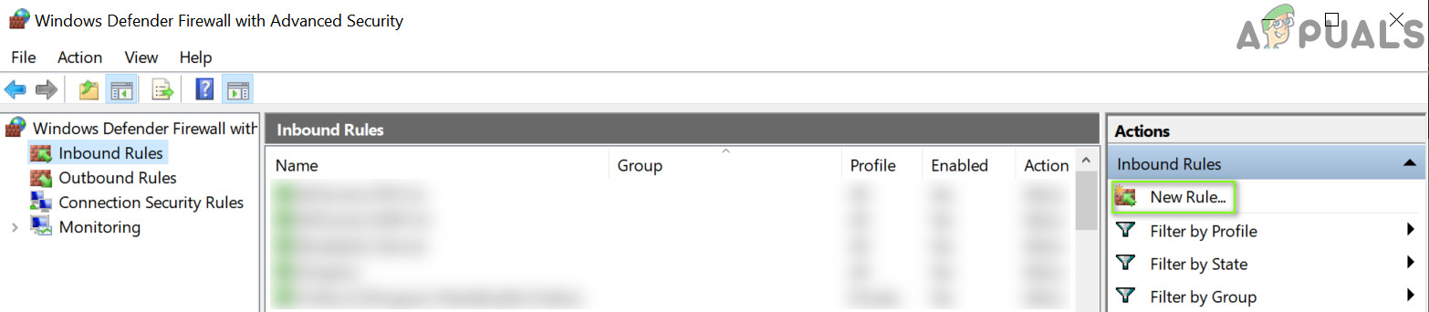 Allow the Minecraft Connection Through the Windows Defender Firewall - Then select Inbound Rules & click on New Rule.