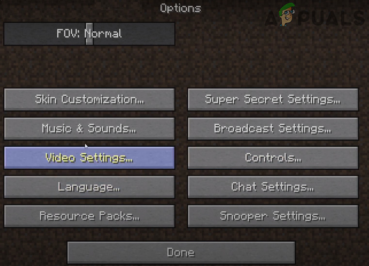 - Open the Minecraft Launcher & open its Options (it will be also a good idea to lower the Render Distance in the server settings, if possible).