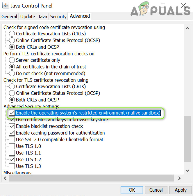 - Now steer to the Advanced tab & checkmark Enable the Operating System’s Restricted Environment (Native Sandbox).