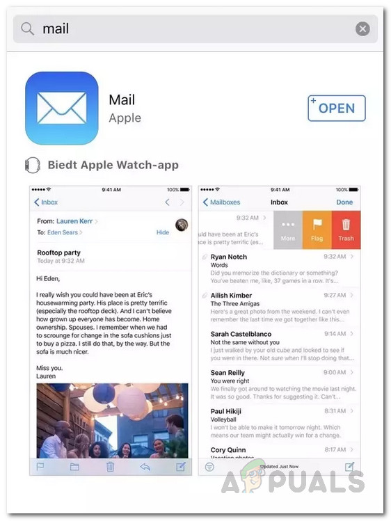 - Once you have deleted the app from your device, open up App Store and search for Mail.