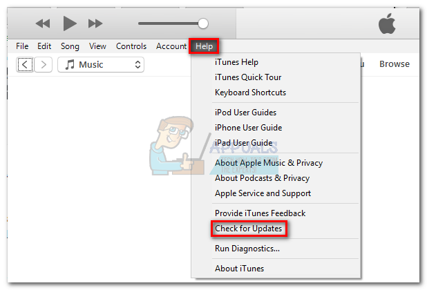 To update iTunes, open it and click the Help button on the top menu, then tap on Check for updates.