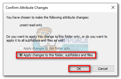 - Immediately after you hit Apply, you will be asked to define your changes. Select the toggle next to Apply changes to this folder, subfolders, and files. Click Ok to confirm.