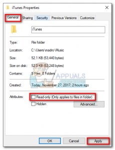 The reason behind this ambiguous error message is usually related to an authorization or administration permission. It’s entirely possible that your iTunes folder or iOS device contains a file that cannot be modified. Apparently, Windows 10 is even more strict when it comes to modifying permissions – the majority of users encountering this problem are on Windows 10. If your iTunes folder is set to Read-only, the syncing with the iOS device will usually be hindered.