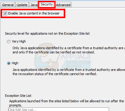 - Check the option Enable Java content in the browser