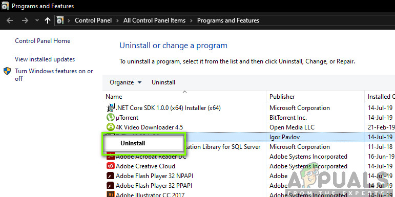 Uninstalling Problematic Software - Restart your computer after the uninstallation process and check if the problem at hand got solved.