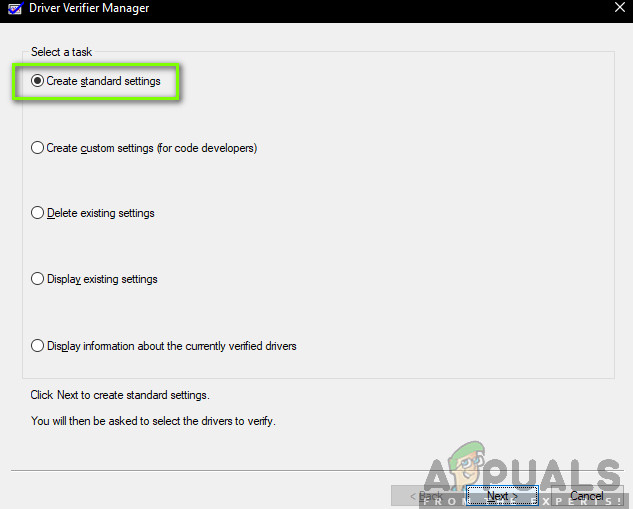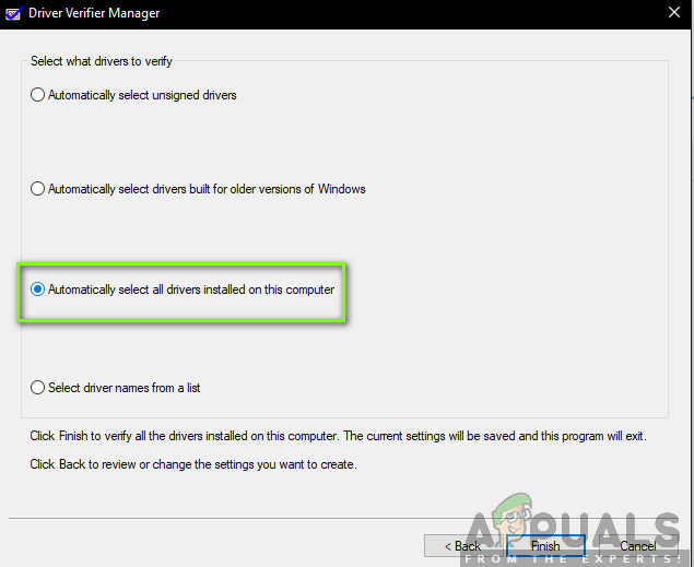 Selecting all Drivers – Driver Verifier - When Windows restarts the next time, it will analyze all the drivers installed on your computer for issues. If it finds some issues, it will notify you accordingly. This may take time so be patient and let the process finish.