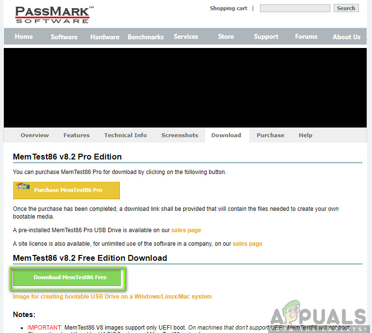 Note: When you create a bootable drive for memtest, all its contents will be erased. - After creating the bootable drive, restart your computer and let your computer load this bootable drive. After the program loads up, proceed with the memory test.