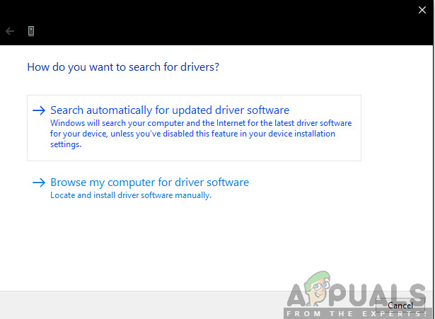 Updating Drivers - Now Windows will pop a dialogue box asking you which way do you want to update your driver. Select the first option (Search automatically for updated driver software) and proceed. If you are unable to update the drivers, you can head over to your manufacturer’s site, download the drivers manually and select the second option.