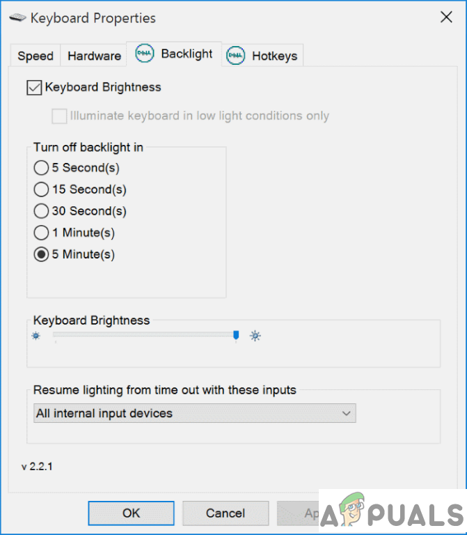 Windows Keyboard Properties. - ASUS ATK software package. Some users who were using ASUS branded laptops have reported that the keyboard backlight failed to work after their windows were updated to Windows 10 from Windows 8 or other versions of windows. ASUS uses its proprietary software to handle various features and gestures of their laptops, this software is called the ATK package. Updating this software package will fix this issue.