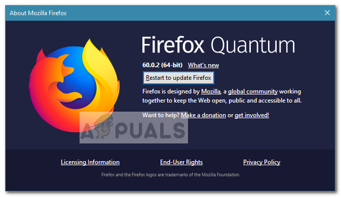 Note: If updating to the latest Firefox build is not an option (due to extension incompatibility or other issues), skip straight to Method 4.
