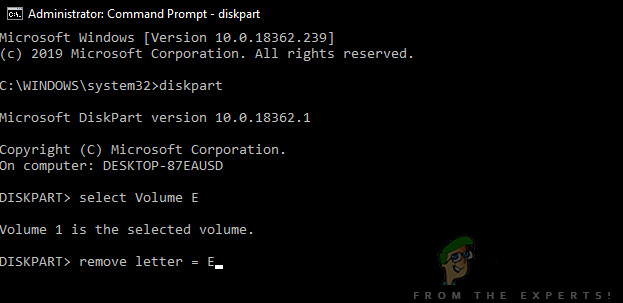 Note: In this case, the letter of the drive which appeared randomly was ‘E’. If your case is different, you can alter the command accordingly.