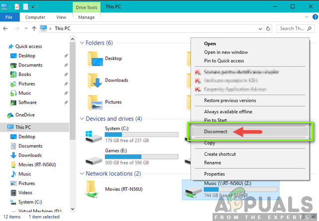 Looking for Network Drives - Now, right-click on the drive and select Disconnect.