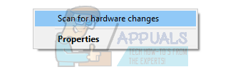 - Once the device is uninstalled, right click on any empty space on the Device manager and select “Scan for hardware changes”. Your computer will now detect the audio hardware on your computer and automatically install “High Definition Audio Device”.