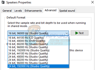 We can increase the frequency of the sound output from the sound settings. Having a high-frequency output doesn’t harm your computer in any way and it is reported that varying the frequency increases the sound output from the speakers significantly. You can always change back to default settings if this doesn’t make a difference.