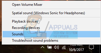 - Right click on the sound icon present at your taskbar and select “Sounds” (bottom right side of the screen).