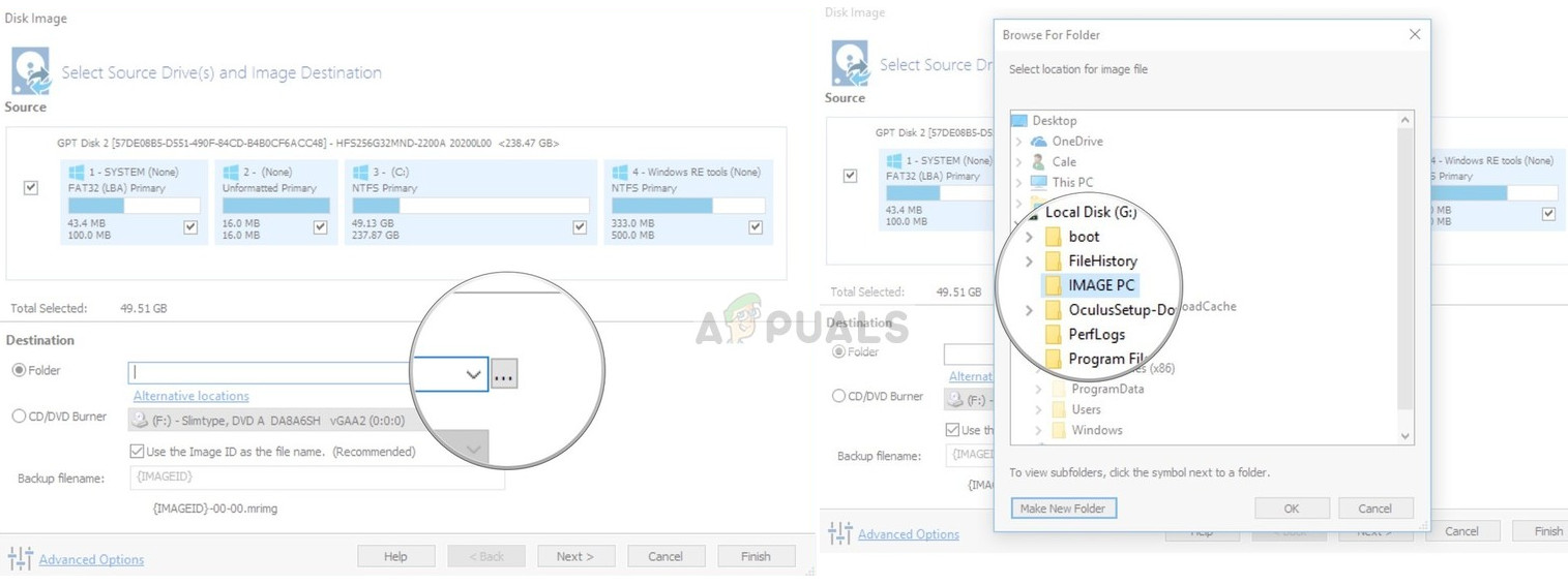 - Click the browse button to choose the location for the image. Press OK after selecting the location.