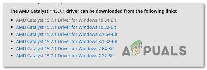 If you’re using an AMD GPU, chances are the issue is occurring because the Catalyst Control Center is not installed on the PC that is displaying the issue. Several affected users have reported that the “My apps don’t work with this driver” issue was no longer occurring after they ensured that AMD’s Catalyst Control Center is installed on their Machine.