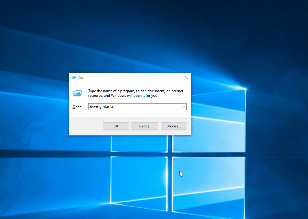 - Press Windows key + R to open up a Run dialog box. Then, type “devmgmt.msc” and press Enter to open up Device Manager.
