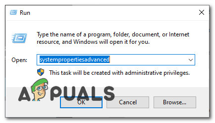 - Once you open the Run Program, type the following command: systempropertiesadvanced