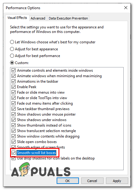 - Now make sure the option named “Smooth-scroll list boxes”.