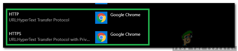- HTTP/HTTPS Configuration: In some cases, the default application for the HTTP/HTTPS protocol hasn’t been selected due to which this error is triggered. It is important that a default browser is selected for these specific protocols.