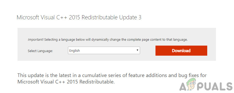 Solution 6: Installing Microsoft Visual C++ 2015