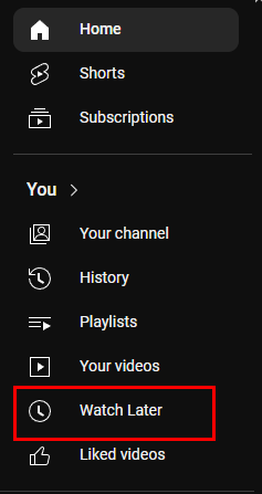 - Click on Watch Later located at the left side of the screen.