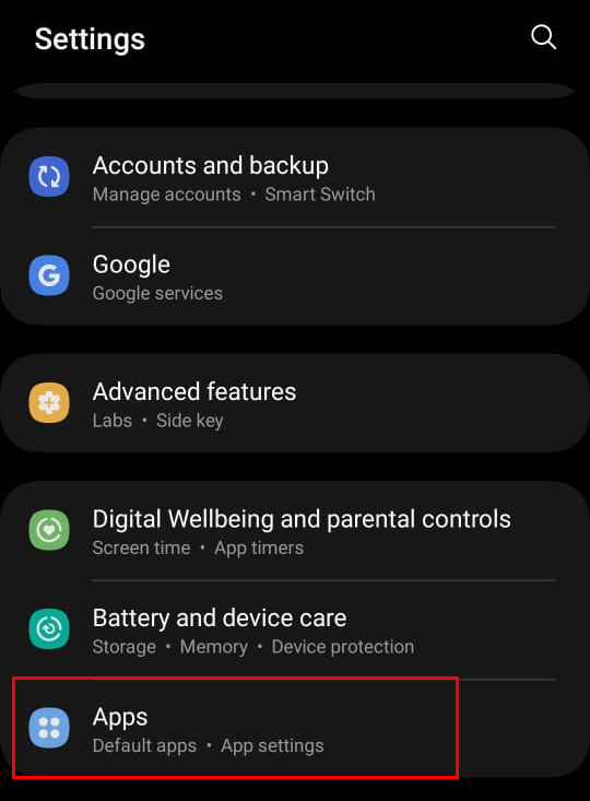 - In the main Settings menu, tap Apps.