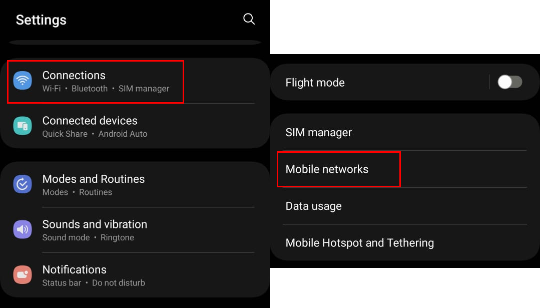 - Open the Settings menu from your home screen. Tap on Connections > Mobile networks.
