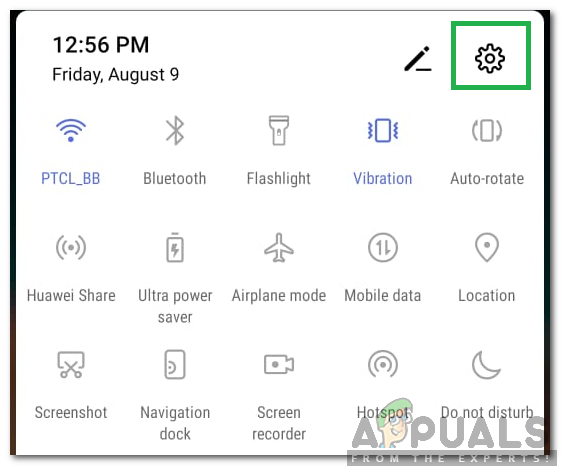 - Drag down the notifications panel and click on the settings cog.